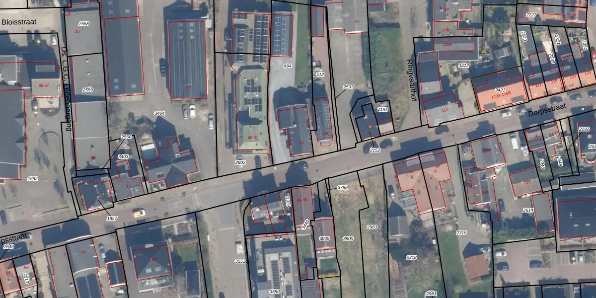 Gebruik de zoekbalk of klik op een perceel voor informatie over de adressen binnen dit perceel.