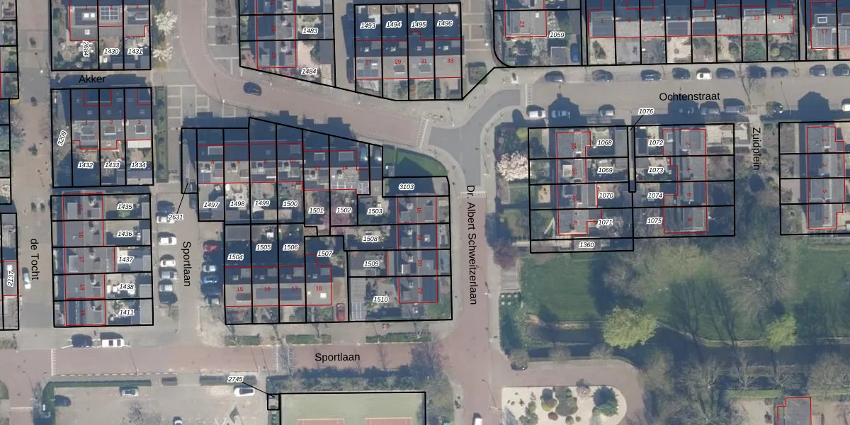 Dr. Albert Schweitzerlaan 16 is gelegen op kadastraal perceel BHZ02B1503. Deze kadastrale aanduiding is uniek en wordt gebruikt door het Kadaster om eigendomsrechten en andere zakelijke rechten vast te leggen. Het perceel maakt onderdeel uit van de kadastrale gemeente Benthuizen.