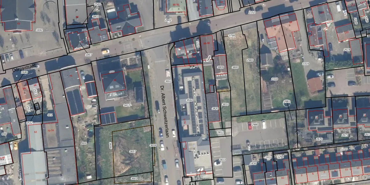 Het perceel waarop Dr. Albert Schweitzerlaan 3-B staat heeft een oppervlakte van 1031 m². Dit is een zeer groot perceel. De perceeloppervlakte wordt geregistreerd door het Kadaster. Gedetailleerde informatie over de maten van dit perceel kunt u vinden in het rapport Kadastrale kaart met maatvoering van Dr. Albert Schweitzerlaan 3-B.