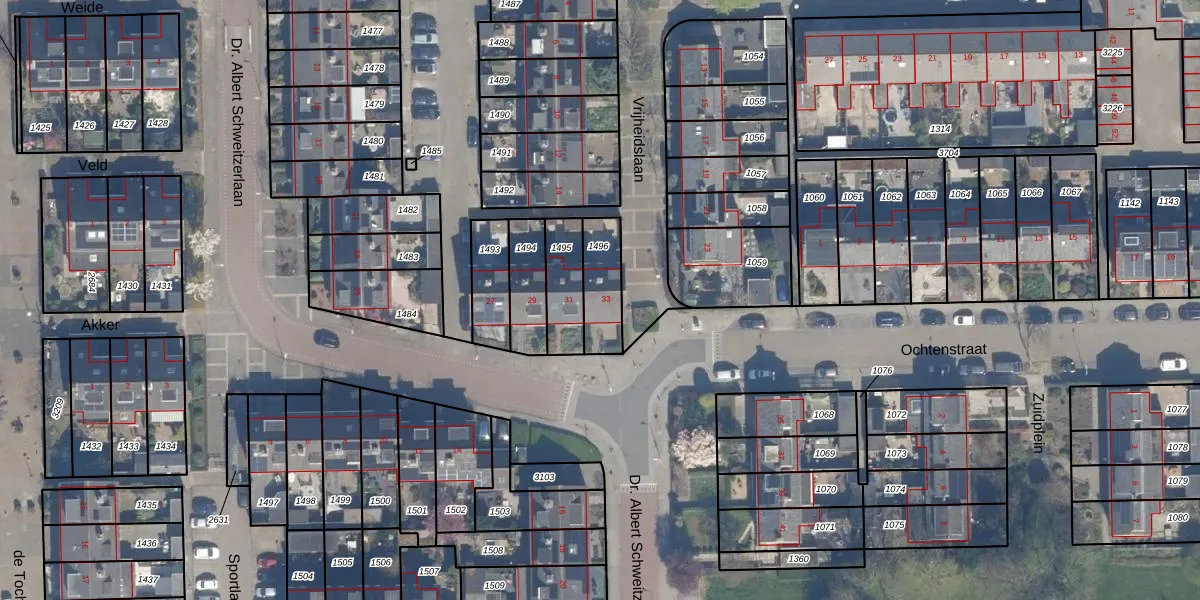 Gebruik de zoekbalk of klik op een perceel voor informatie over de adressen binnen dit perceel.