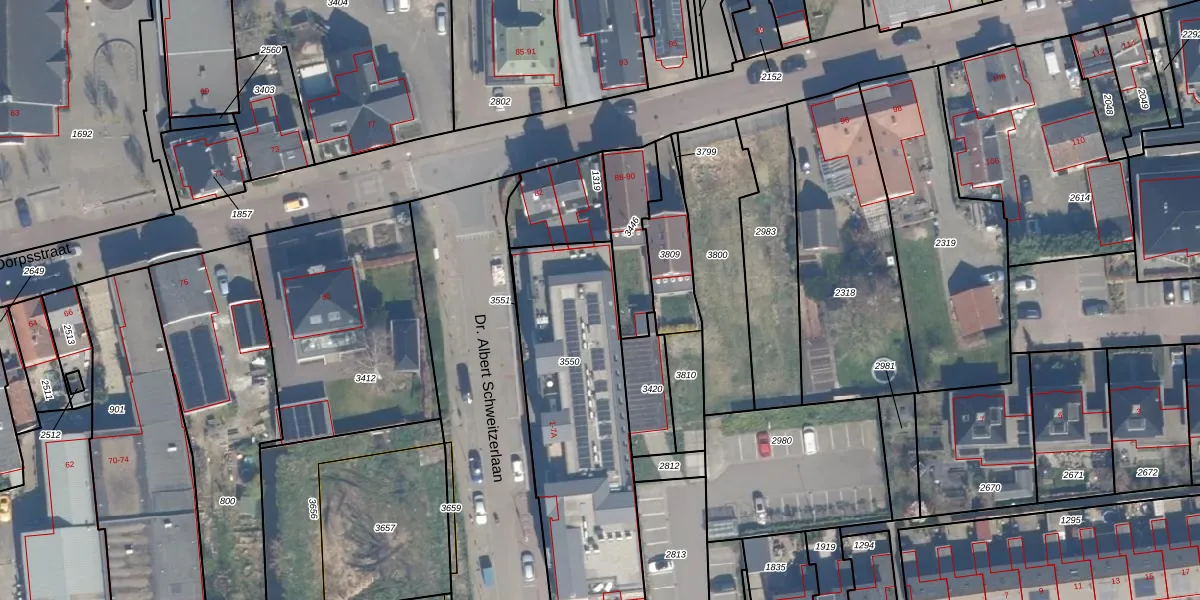 Dr. Albert Schweitzerlaan 7-A is gelegen op kadastraal perceel BHZ02B3550. Deze kadastrale aanduiding is uniek en wordt gebruikt door het Kadaster om eigendomsrechten en andere zakelijke rechten vast te leggen. Het perceel maakt onderdeel uit van de kadastrale gemeente Benthuizen.