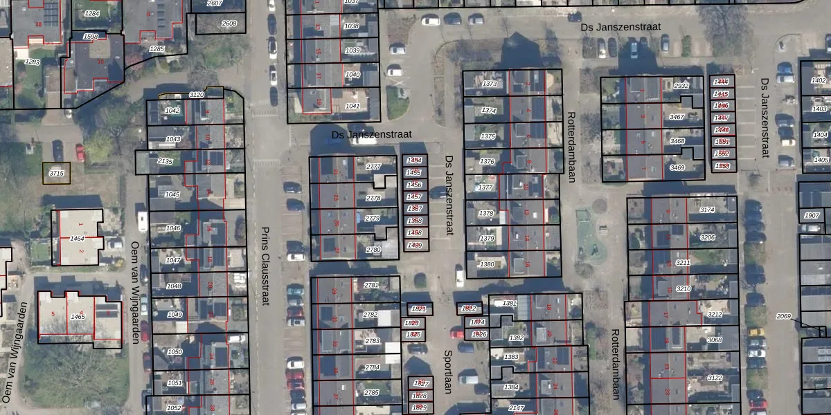 Gebruik de zoekbalk of klik op een perceel voor informatie over de adressen binnen dit perceel.