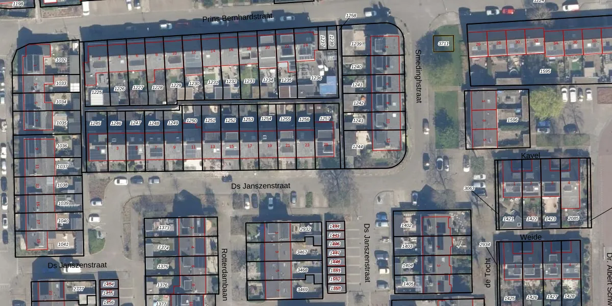 Het perceel waarop Ds Janszenstraat 23 staat heeft een oppervlakte van 133 m². Dit is een middelgroot perceel. De perceeloppervlakte wordt geregistreerd door het Kadaster. Gedetailleerde informatie over de maten van dit perceel kunt u vinden in het rapport Kadastrale kaart met maatvoering van Ds Janszenstraat 23.