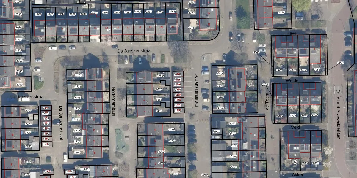 Het perceel waarop Ds Janszenstraat 25-L staat heeft een oppervlakte van 17 m². Dit is een klein perceel. De perceeloppervlakte wordt geregistreerd door het Kadaster. Gedetailleerde informatie over de maten van dit perceel kunt u vinden in het rapport Kadastrale kaart met maatvoering van Ds Janszenstraat 25-L.