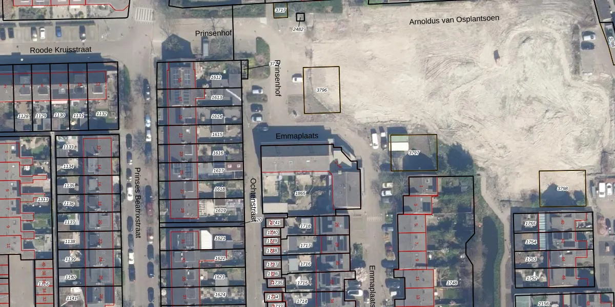 Het perceel waarop Emmaplaats 6 staat heeft een oppervlakte van 690 m². Dit is een groot perceel. De perceeloppervlakte wordt geregistreerd door het Kadaster. Gedetailleerde informatie over de maten van dit perceel kunt u vinden in het rapport Kadastrale kaart met maatvoering van Emmaplaats 6.