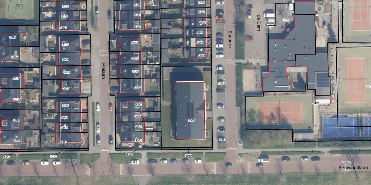 Esdoorn 38 is gelegen op kadastraal perceel BHZ02B3048. Deze kadastrale aanduiding is uniek en wordt gebruikt door het Kadaster om eigendomsrechten en andere zakelijke rechten vast te leggen. Het perceel maakt onderdeel uit van de kadastrale gemeente Benthuizen.