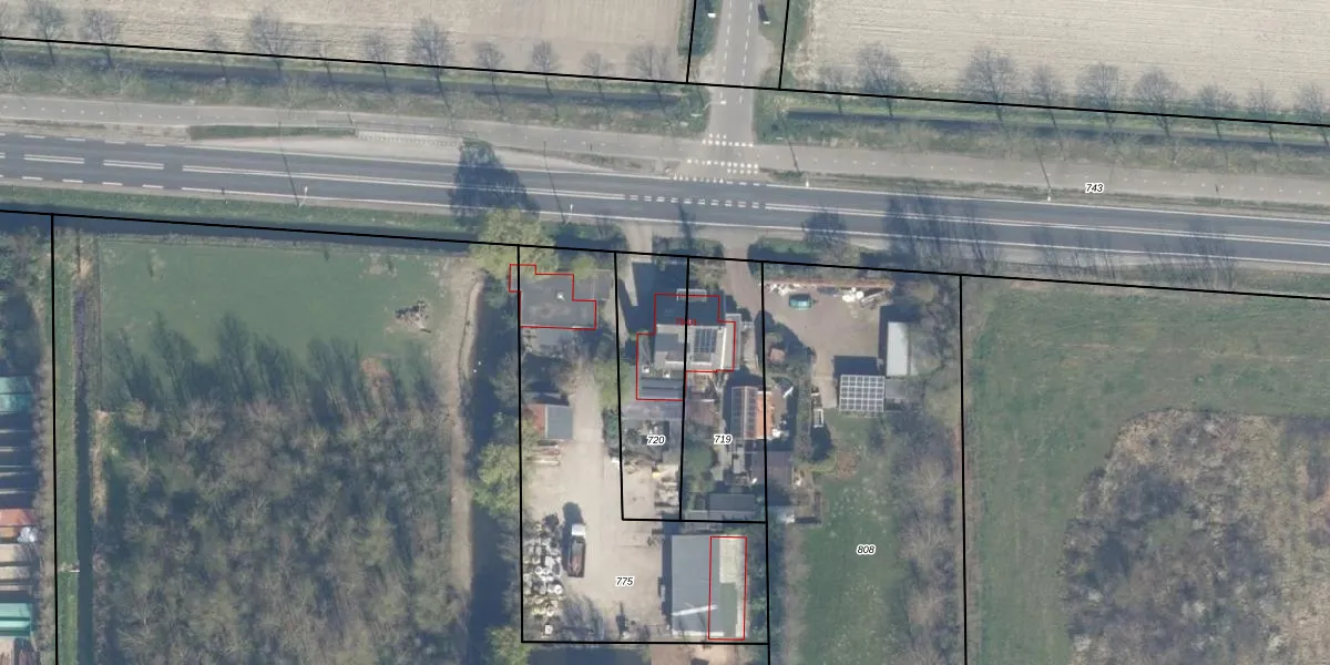 Het adres ligt op het perceel BHZ02-D-720, dat zich in de kadastrale gemeente Benthuizen bevindt. Het perceel is kleiner dan gemiddeld in Benthuizen. Het perceel is 415 m² groot, terwijl het gemiddelde ligt op 4750,15 m². Het kleinste perceel in de kadastrale gemeente is 0 m² groot. De grootste perceeloppervlakte is 44,1 ha. Er zijn geen andere adressen aanwezig op het perceel. In de Basisregistratie Kadaster (BRK) werden de grenzen van het perceel geregistreerd op 11-02-2003.