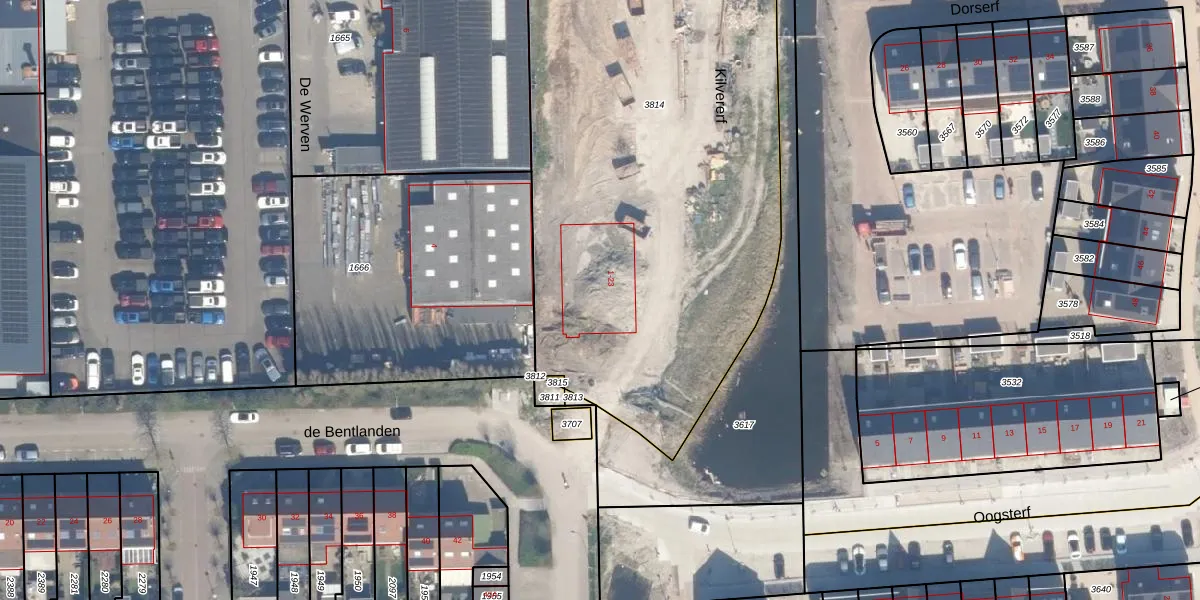 Het perceel waarop Kilvererf 15 staat heeft een oppervlakte van 4858 m². Dit is een zeer groot perceel. De perceeloppervlakte wordt geregistreerd door het Kadaster. Gedetailleerde informatie over de maten van dit perceel kunt u vinden in het rapport Kadastrale kaart met maatvoering van Kilvererf 15.