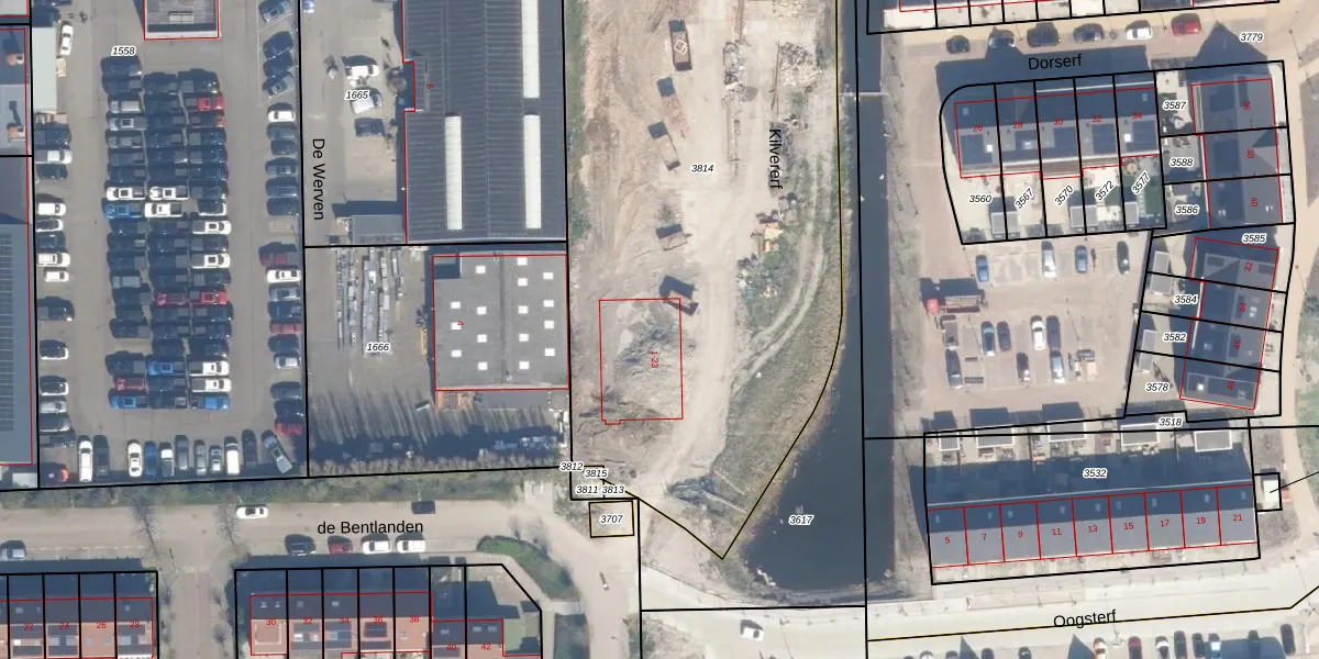 Het perceel waarop Kilvererf 9 staat heeft een oppervlakte van 4858 m². Dit is een zeer groot perceel. De perceeloppervlakte wordt geregistreerd door het Kadaster. Gedetailleerde informatie over de maten van dit perceel kunt u vinden in het rapport Kadastrale kaart met maatvoering van Kilvererf 9.