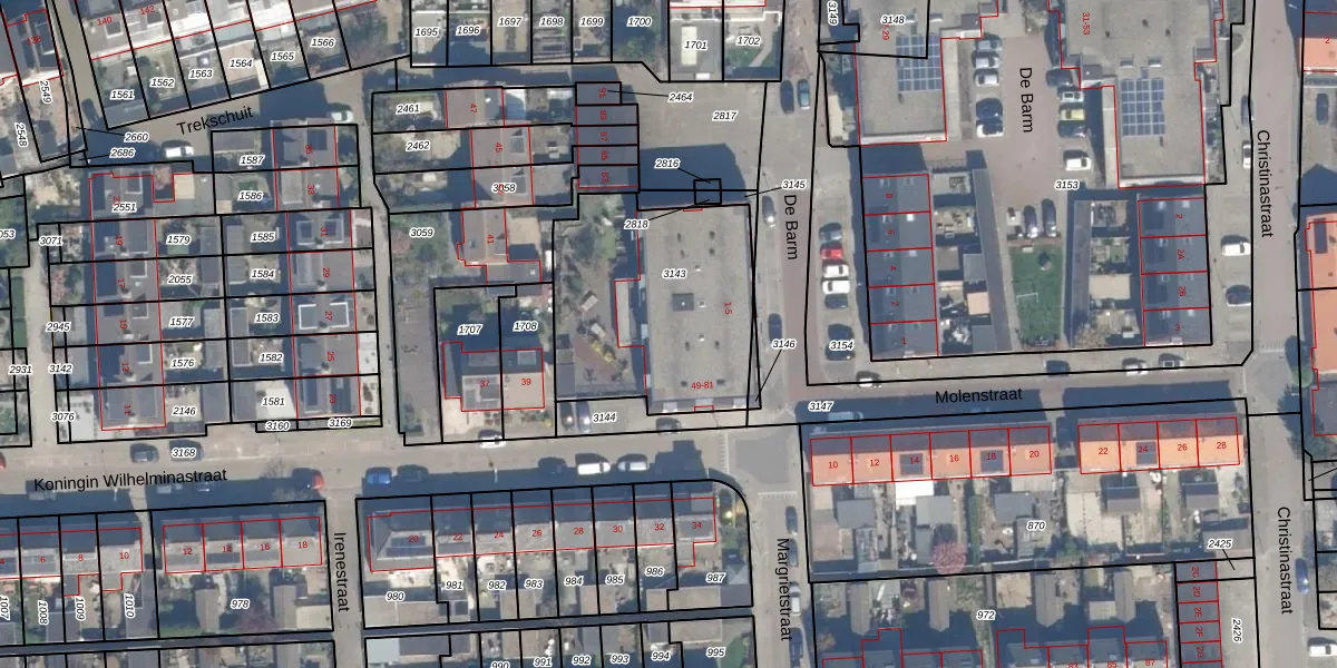 Het perceel waarop Koningin Wilhelminastraat 73 staat heeft een oppervlakte van 880 m². Dit is een groot perceel. De perceeloppervlakte wordt geregistreerd door het Kadaster. Gedetailleerde informatie over de maten van dit perceel kunt u vinden in het rapport Kadastrale kaart met maatvoering van Koningin Wilhelminastraat 73.