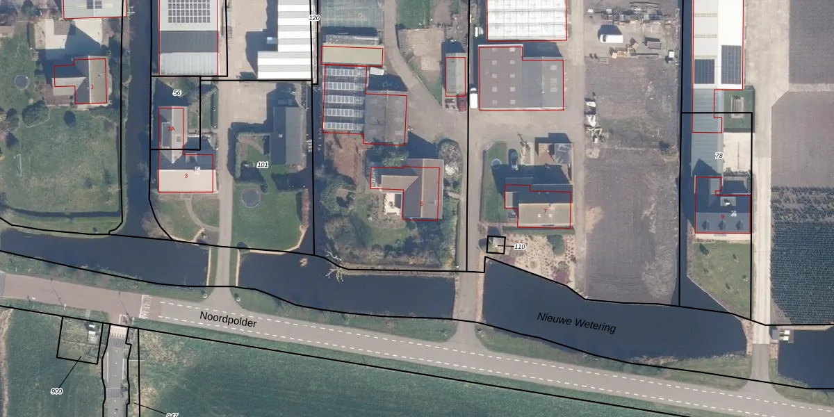 Het perceel waarop Noordpolder 5 staat heeft een oppervlakte van 1,2 ha. Dit is een zeer groot perceel. De perceeloppervlakte wordt geregistreerd door het Kadaster. Gedetailleerde informatie over de maten van dit perceel kunt u vinden in het rapport Kadastrale kaart met maatvoering van Noordpolder 5.