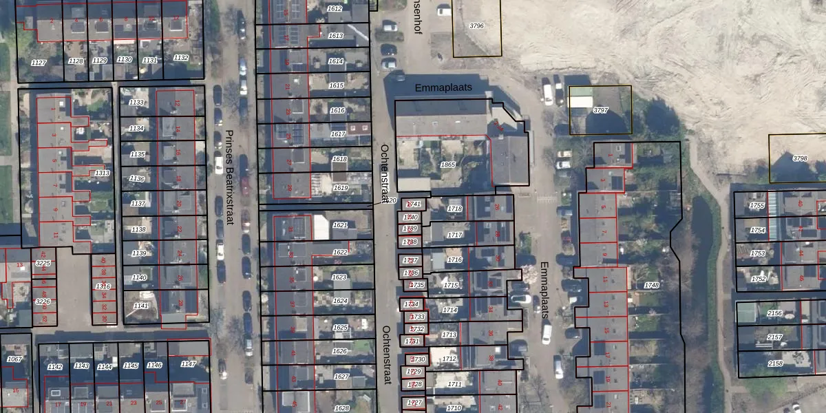 Gebruik de zoekbalk of klik op een perceel voor informatie over de adressen binnen dit perceel.