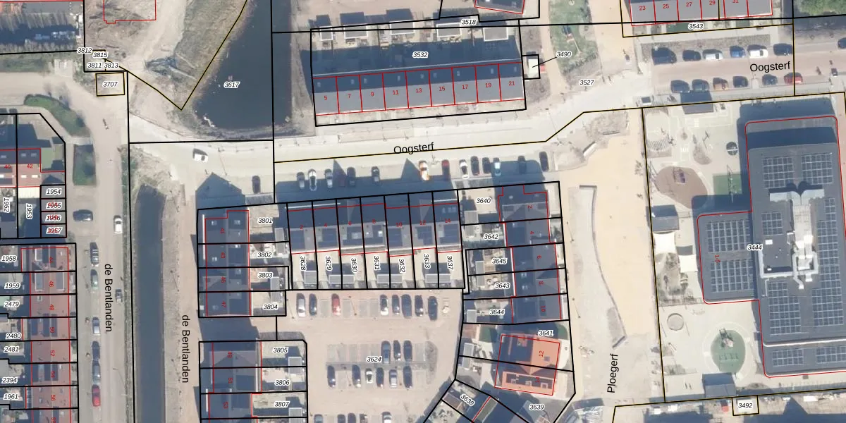 Oogsterf 12 is gelegen op kadastraal perceel BHZ02B3633. Deze kadastrale aanduiding is uniek en wordt gebruikt door het Kadaster om eigendomsrechten en andere zakelijke rechten vast te leggen. Het perceel maakt onderdeel uit van de kadastrale gemeente Benthuizen.