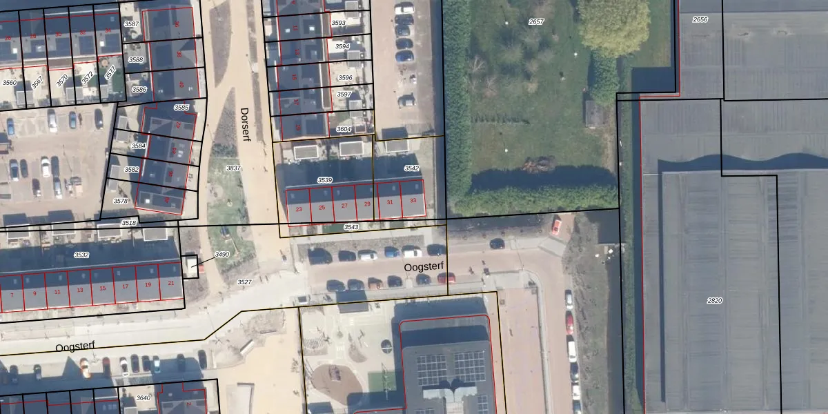 Het perceel waarop Oogsterf 33 staat heeft een oppervlakte van 340 m². Dit is een groot perceel. De perceeloppervlakte wordt geregistreerd door het Kadaster. Gedetailleerde informatie over de maten van dit perceel kunt u vinden in het rapport Kadastrale kaart met maatvoering van Oogsterf 33.