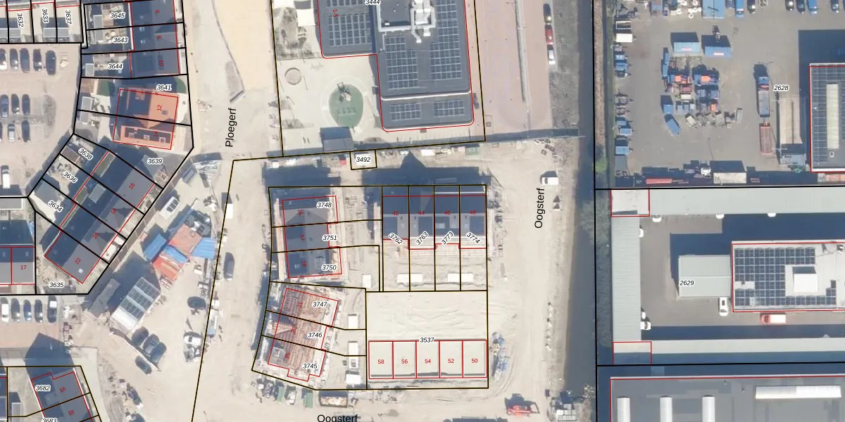 Het perceel waarop Oogsterf 44 staat heeft een oppervlakte van 148 m². Dit is een middelgroot perceel. De perceeloppervlakte wordt geregistreerd door het Kadaster. Gedetailleerde informatie over de maten van dit perceel kunt u vinden in het rapport Kadastrale kaart met maatvoering van Oogsterf 44.