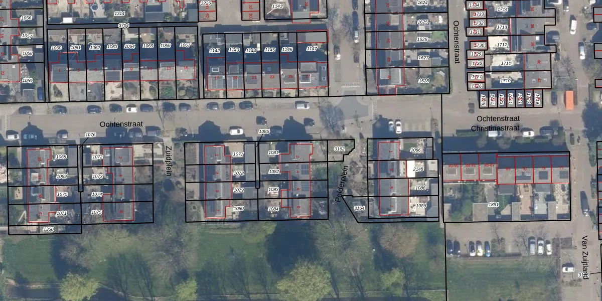 Gebruik de zoekbalk of klik op een perceel voor informatie over de adressen binnen dit perceel.