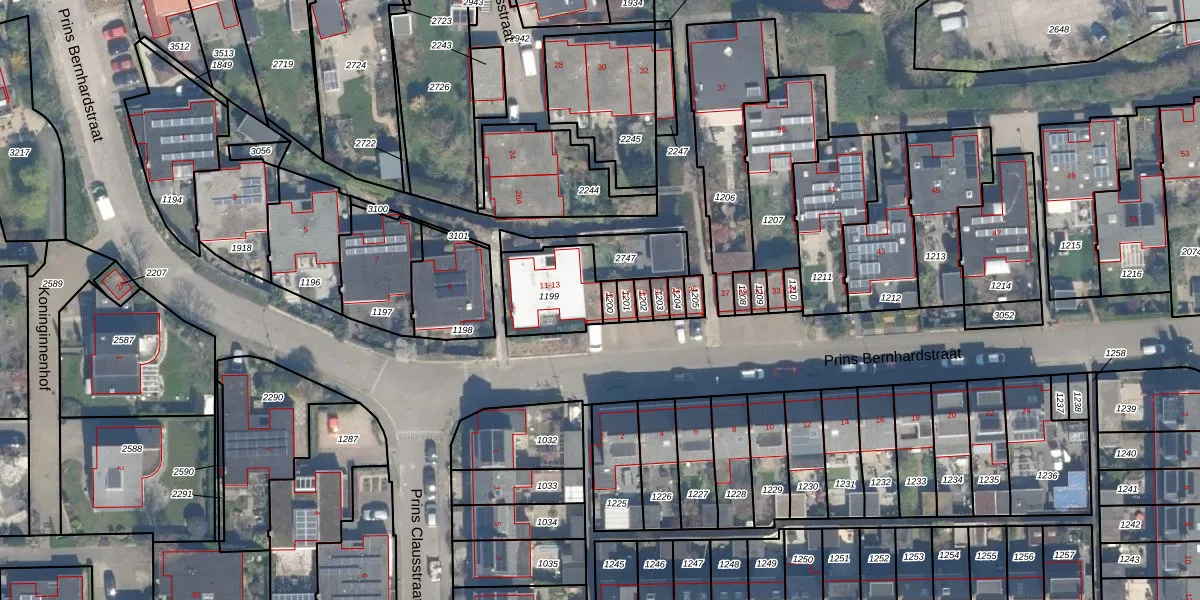 Prins Bernhardstraat 13 is gelegen op kadastraal perceel BHZ02B1199. Deze kadastrale aanduiding is uniek en wordt gebruikt door het Kadaster om eigendomsrechten en andere zakelijke rechten vast te leggen. Het perceel maakt onderdeel uit van de kadastrale gemeente Benthuizen.