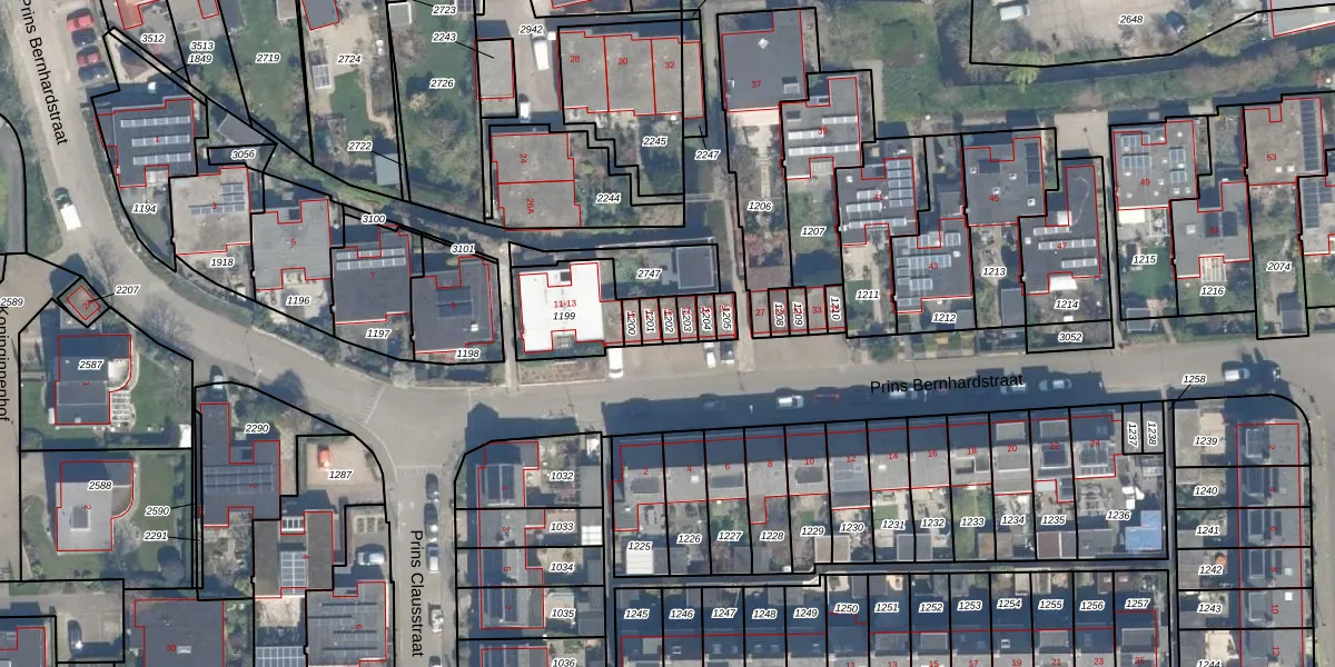 Prins Bernhardstraat 19 is gelegen op kadastraal perceel BHZ02B1202. Deze kadastrale aanduiding is uniek en wordt gebruikt door het Kadaster om eigendomsrechten en andere zakelijke rechten vast te leggen. Het perceel maakt onderdeel uit van de kadastrale gemeente Benthuizen.