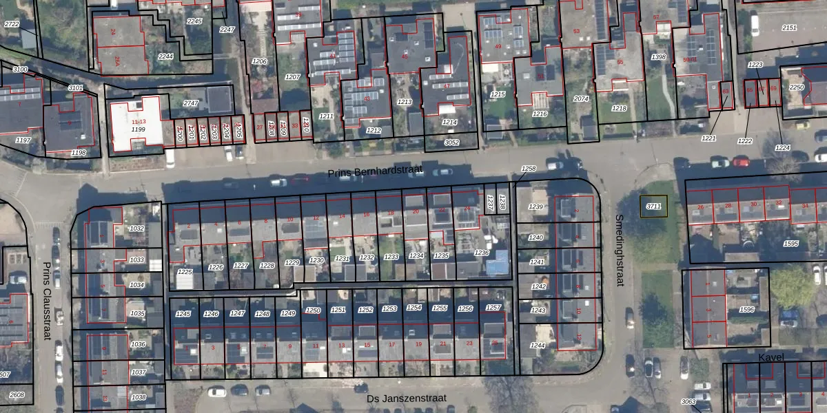 Gebruik de zoekbalk of klik op een perceel voor informatie over de adressen binnen dit perceel.
