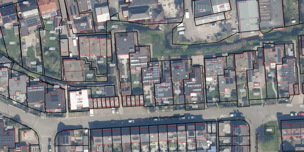 Gebruik de zoekbalk of klik op een perceel voor informatie over de adressen binnen dit perceel.