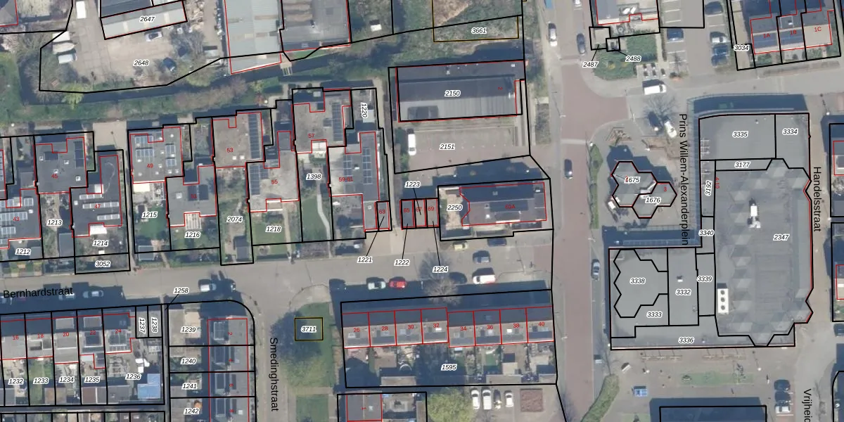 Gebruik de zoekbalk of klik op een perceel voor informatie over de adressen binnen dit perceel.