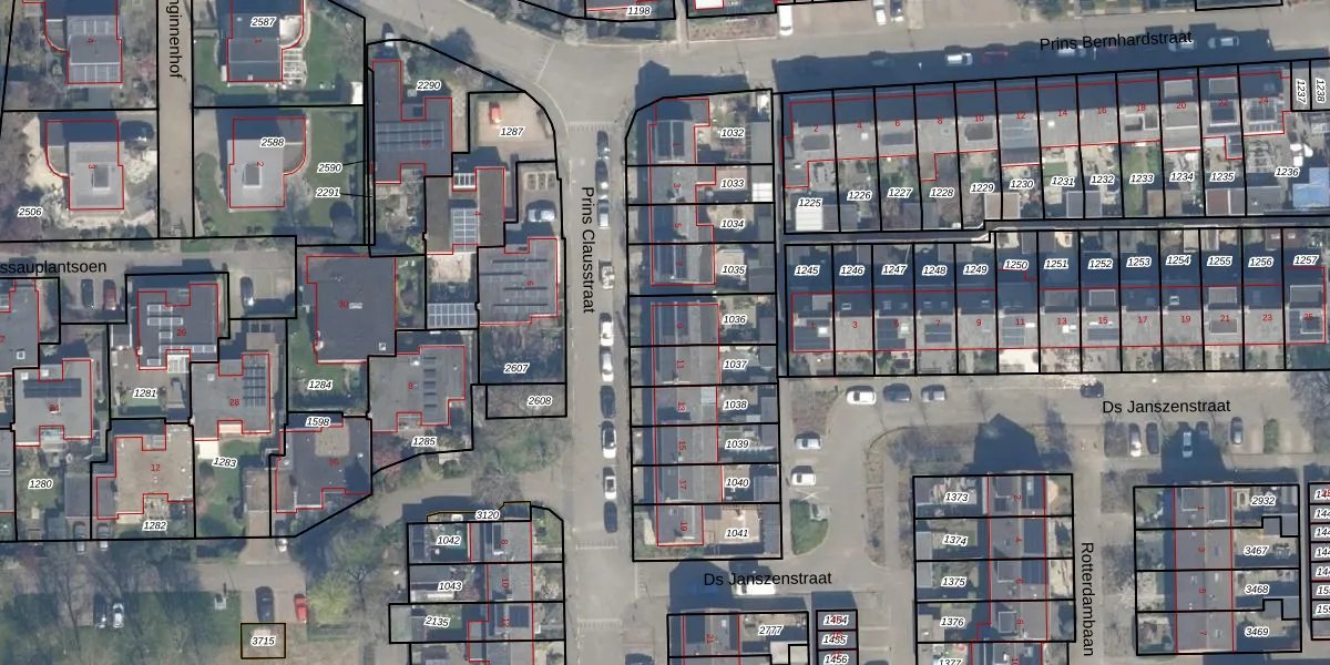 Het perceel waarop Prins Clausstraat 9 staat heeft een oppervlakte van 169 m². Dit is een middelgroot perceel. De perceeloppervlakte wordt geregistreerd door het Kadaster. Gedetailleerde informatie over de maten van dit perceel kunt u vinden in het rapport Kadastrale kaart met maatvoering van Prins Clausstraat 9.