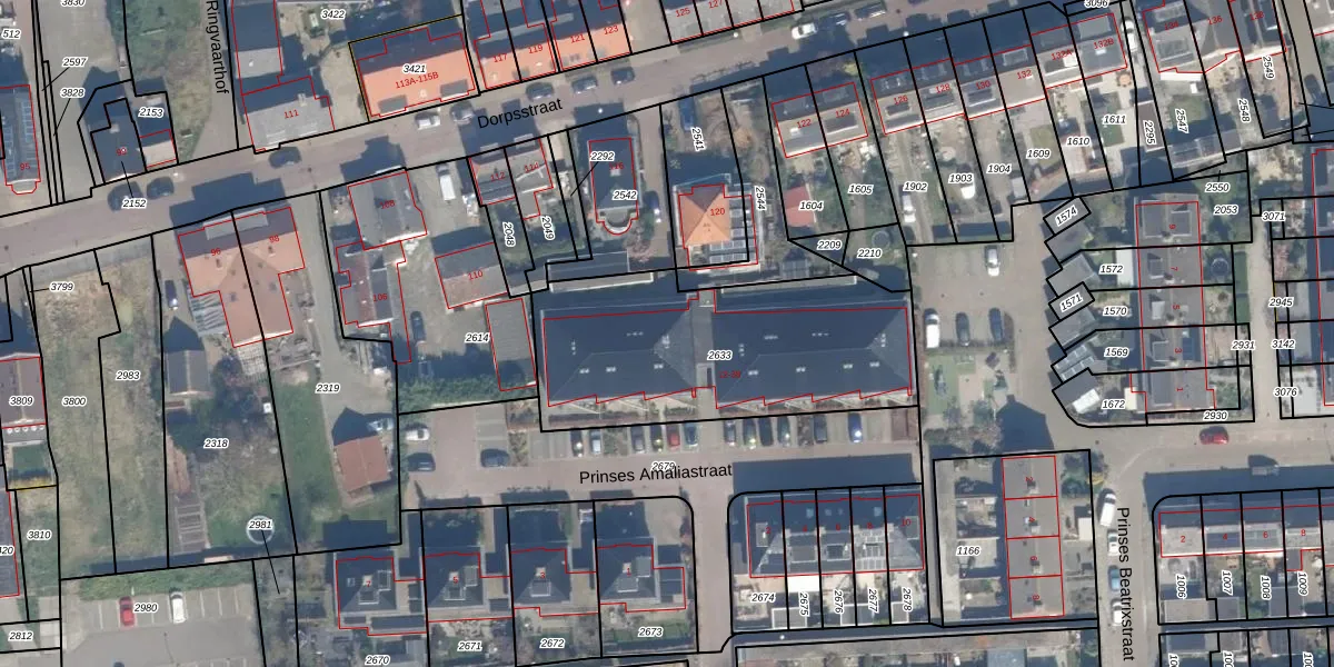 Het perceel waarop Prinses Amaliastraat 34 staat heeft een oppervlakte van 1176 m². Dit is een zeer groot perceel. De perceeloppervlakte wordt geregistreerd door het Kadaster. Gedetailleerde informatie over de maten van dit perceel kunt u vinden in het rapport Kadastrale kaart met maatvoering van Prinses Amaliastraat 34.