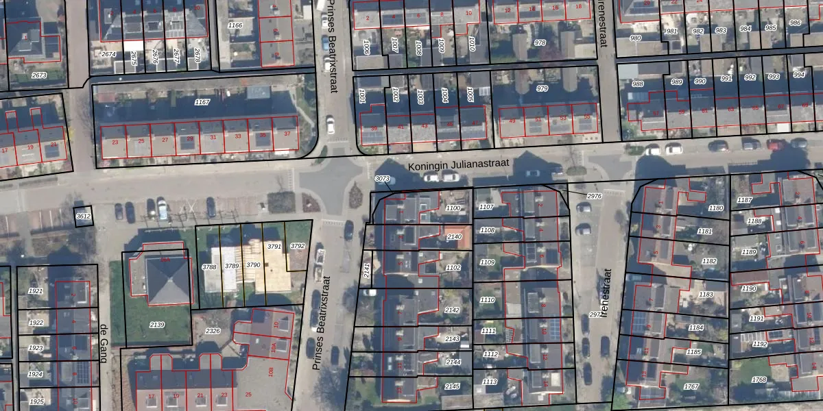 Gebruik de zoekbalk of klik op een perceel voor informatie over de adressen binnen dit perceel.