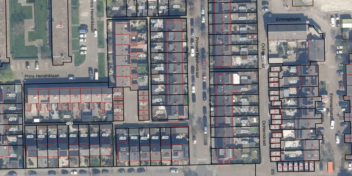 Gebruik de zoekbalk of klik op een perceel voor informatie over de adressen binnen dit perceel.