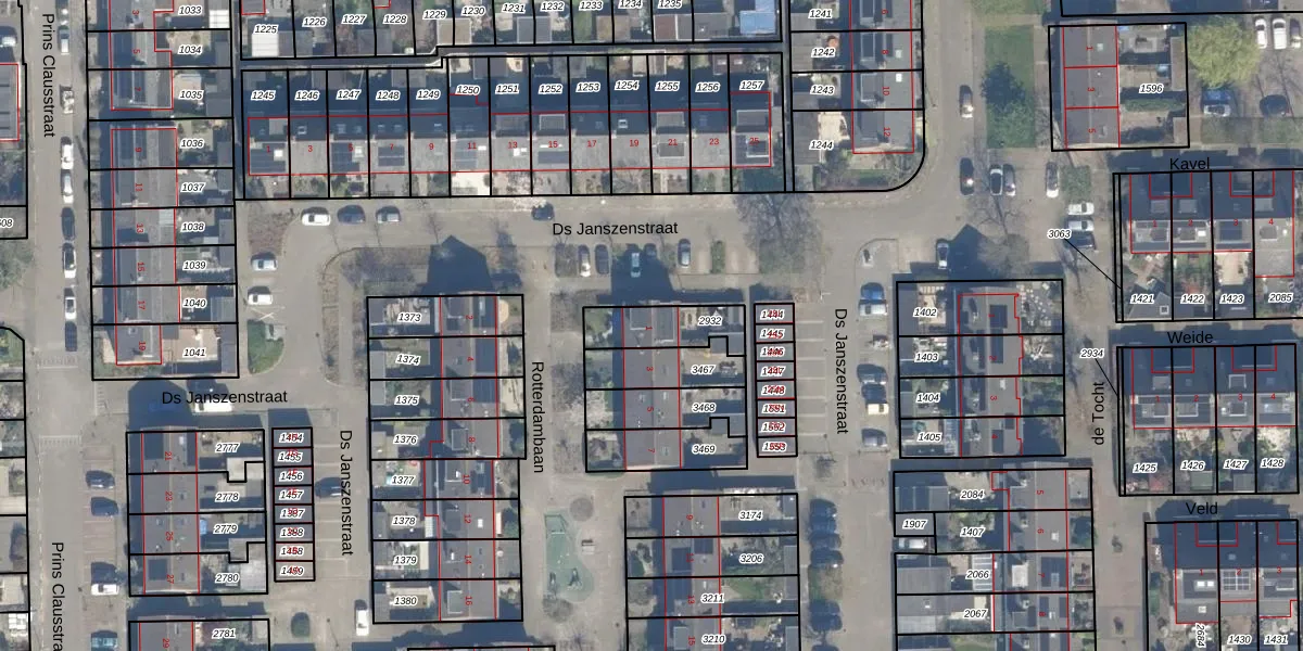 Gebruik de zoekbalk of klik op een perceel voor informatie over de adressen binnen dit perceel.