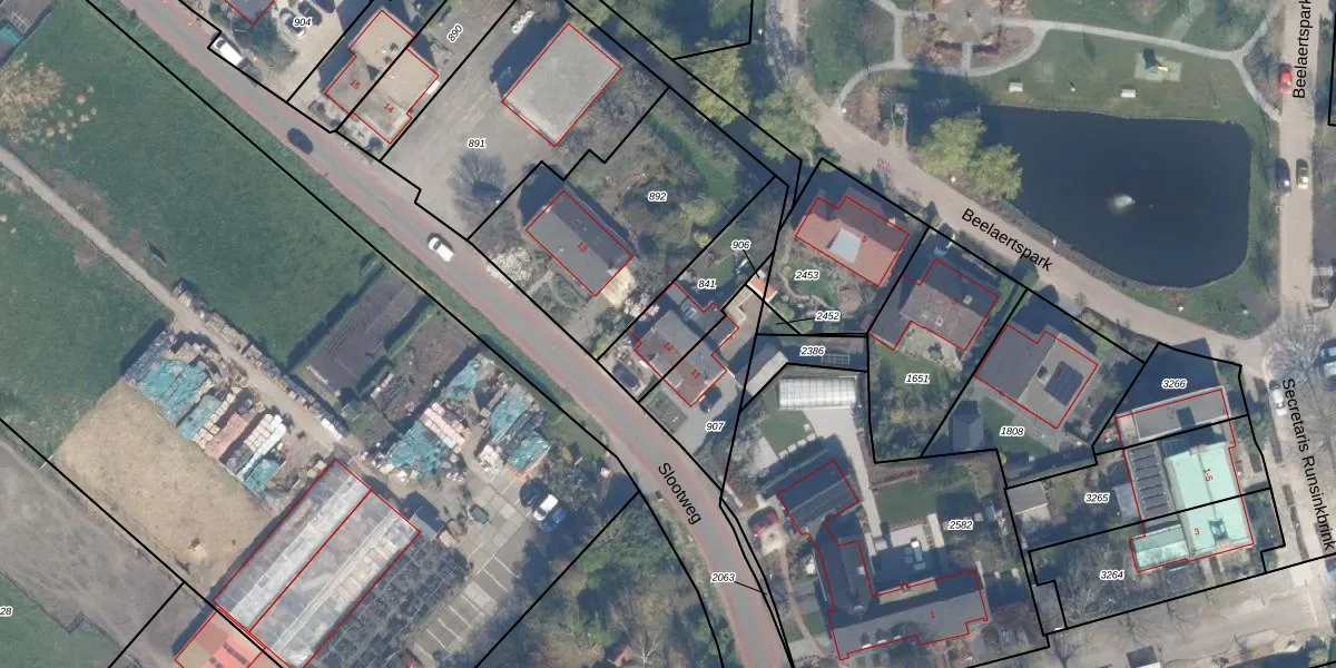 Gebruik de zoekbalk of klik op een perceel voor informatie over de adressen binnen dit perceel.