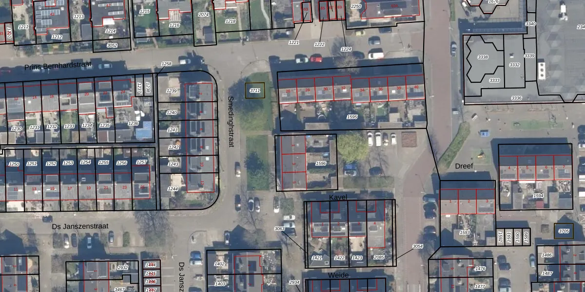 Het perceel waarop Smedinghstraat 1 staat heeft een oppervlakte van 398 m². Dit is een groot perceel. De perceeloppervlakte wordt geregistreerd door het Kadaster. Gedetailleerde informatie over de maten van dit perceel kunt u vinden in het rapport Kadastrale kaart met maatvoering van Smedinghstraat 1.