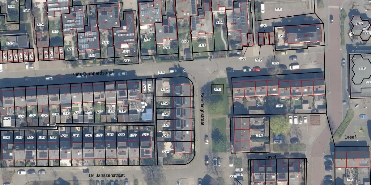 Het perceel waarop Smedinghstraat 2 staat heeft een oppervlakte van 208 m². Dit is een middelgroot perceel. De perceeloppervlakte wordt geregistreerd door het Kadaster. Gedetailleerde informatie over de maten van dit perceel kunt u vinden in het rapport Kadastrale kaart met maatvoering van Smedinghstraat 2.