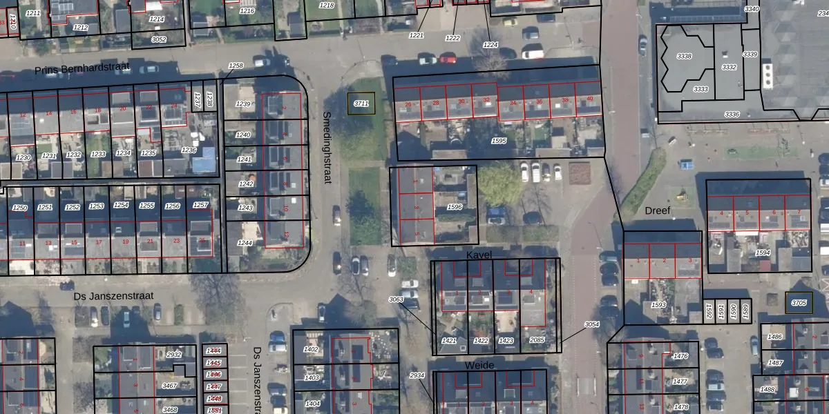 Het perceel waarop Smedinghstraat 3 staat heeft een oppervlakte van 398 m². Dit is een groot perceel. De perceeloppervlakte wordt geregistreerd door het Kadaster. Gedetailleerde informatie over de maten van dit perceel kunt u vinden in het rapport Kadastrale kaart met maatvoering van Smedinghstraat 3.