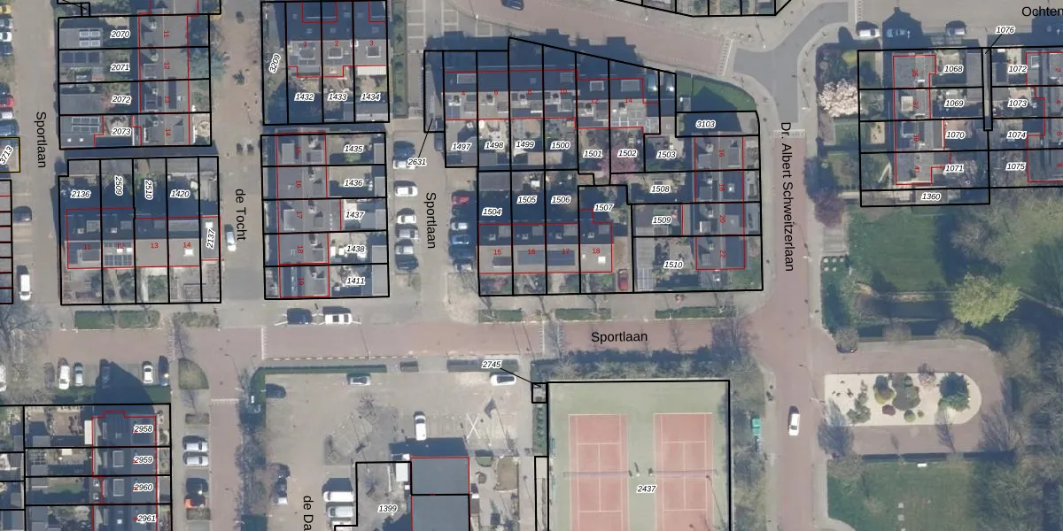 Sportlaan 16 is gelegen op kadastraal perceel BHZ02B1505. Deze kadastrale aanduiding is uniek en wordt gebruikt door het Kadaster om eigendomsrechten en andere zakelijke rechten vast te leggen. Het perceel maakt onderdeel uit van de kadastrale gemeente Benthuizen.