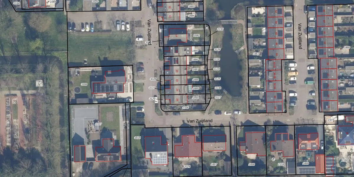 Gebruik de zoekbalk of klik op een perceel voor informatie over de adressen binnen dit perceel.