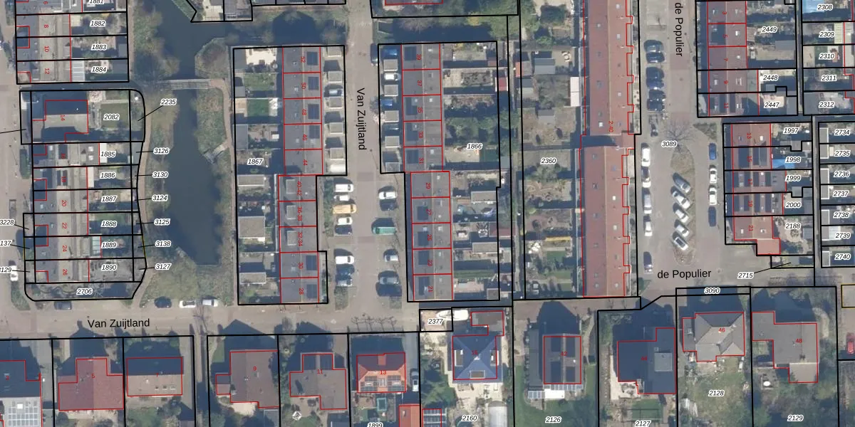 Het perceel waarop Van Zuijtland 27 staat heeft een oppervlakte van 1490 m². Dit is een zeer groot perceel. De perceeloppervlakte wordt geregistreerd door het Kadaster. Gedetailleerde informatie over de maten van dit perceel kunt u vinden in het rapport Kadastrale kaart met maatvoering van Van Zuijtland 27.