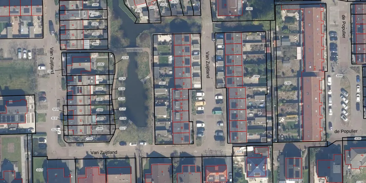 Het perceel waarop Van Zuijtland 40 staat heeft een oppervlakte van 1375 m². Dit is een zeer groot perceel. De perceeloppervlakte wordt geregistreerd door het Kadaster. Gedetailleerde informatie over de maten van dit perceel kunt u vinden in het rapport Kadastrale kaart met maatvoering van Van Zuijtland 40.