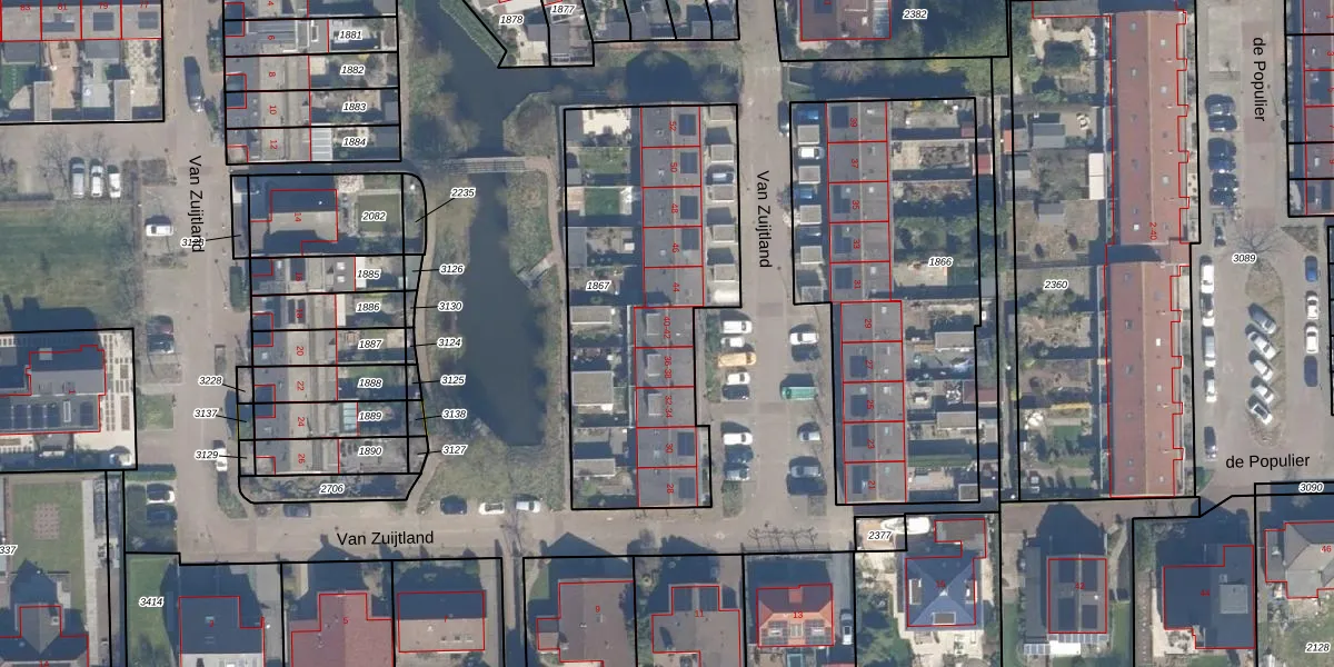 Het perceel waarop Van Zuijtland 42 staat heeft een oppervlakte van 1375 m². Dit is een zeer groot perceel. De perceeloppervlakte wordt geregistreerd door het Kadaster. Gedetailleerde informatie over de maten van dit perceel kunt u vinden in het rapport Kadastrale kaart met maatvoering van Van Zuijtland 42.