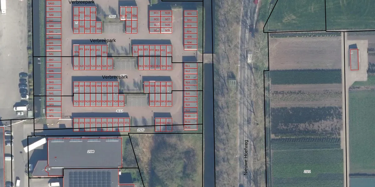 Verbreepark 5-L-6 is gelegen op kadastraal perceel BHZ02B3111. Deze kadastrale aanduiding is uniek en wordt gebruikt door het Kadaster om eigendomsrechten en andere zakelijke rechten vast te leggen. Het perceel maakt onderdeel uit van de kadastrale gemeente Benthuizen.
