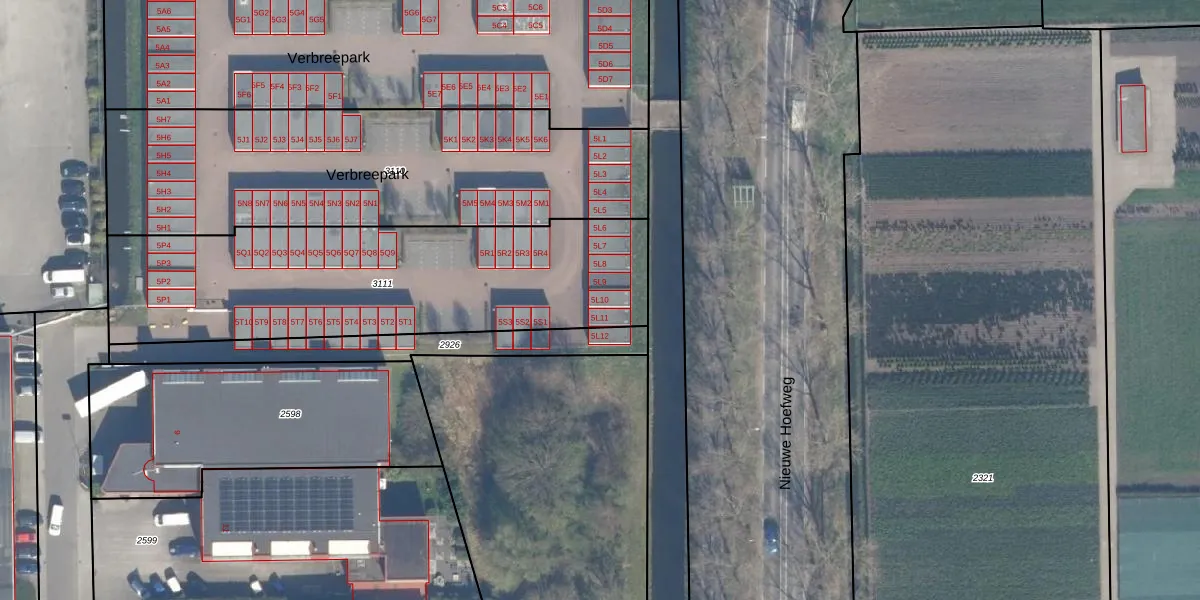 Verbreepark 5-L-10 is gelegen op kadastraal perceel BHZ02B3111. Deze kadastrale aanduiding is uniek en wordt gebruikt door het Kadaster om eigendomsrechten en andere zakelijke rechten vast te leggen. Het perceel maakt onderdeel uit van de kadastrale gemeente Benthuizen.