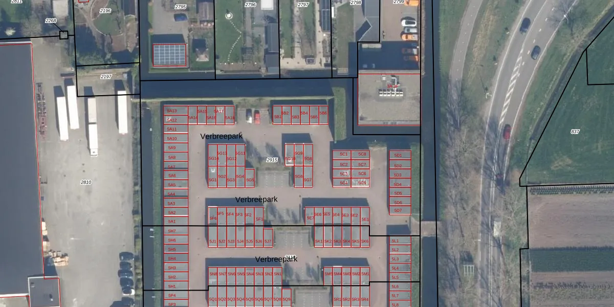 Verbreepark 5-G-8 is gelegen op kadastraal perceel BHZ02B2915. Deze kadastrale aanduiding is uniek en wordt gebruikt door het Kadaster om eigendomsrechten en andere zakelijke rechten vast te leggen. Het perceel maakt onderdeel uit van de kadastrale gemeente Benthuizen.
