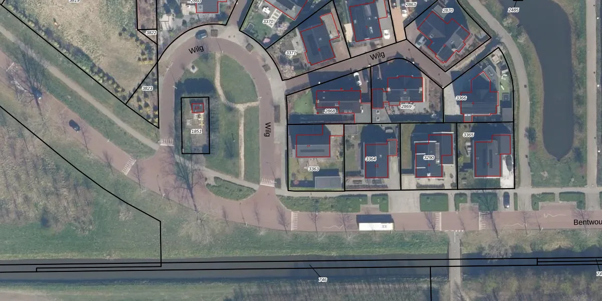 Gebruik de zoekbalk of klik op een perceel voor informatie over de adressen binnen dit perceel.