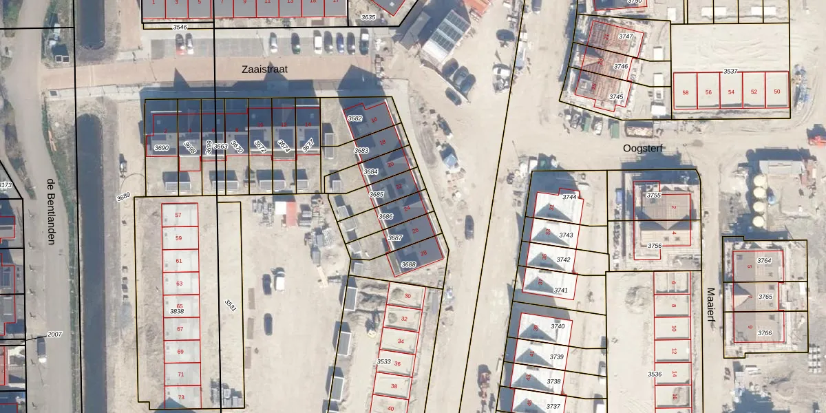 Zaaistraat 24 is gelegen op kadastraal perceel BHZ02B3686. Deze kadastrale aanduiding is uniek en wordt gebruikt door het Kadaster om eigendomsrechten en andere zakelijke rechten vast te leggen. Het perceel maakt onderdeel uit van de kadastrale gemeente Benthuizen.