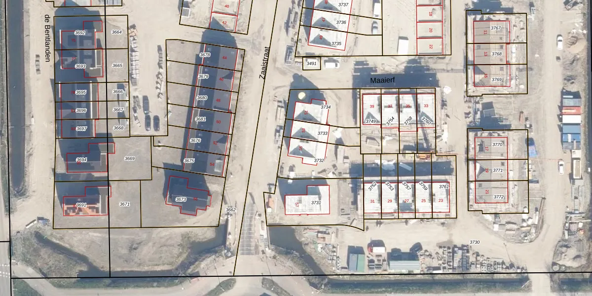 Zaaistraat 55 is gelegen op kadastraal perceel BHZ02B3732. Deze kadastrale aanduiding is uniek en wordt gebruikt door het Kadaster om eigendomsrechten en andere zakelijke rechten vast te leggen. Het perceel maakt onderdeel uit van de kadastrale gemeente Benthuizen.