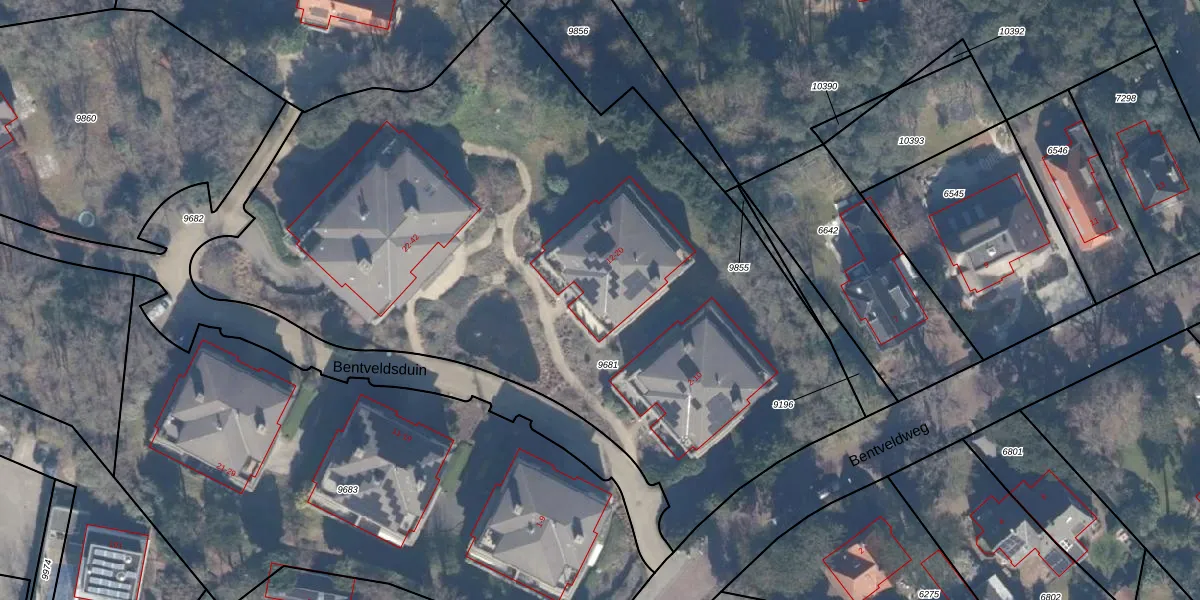 Het perceel waarop Bentveldsduin 14 staat heeft een oppervlakte van 4747 m². Dit is een zeer groot perceel. De perceeloppervlakte wordt geregistreerd door het Kadaster. Gedetailleerde informatie over de maten van dit perceel kunt u vinden in het rapport Kadastrale kaart met maatvoering van Bentveldsduin 14.