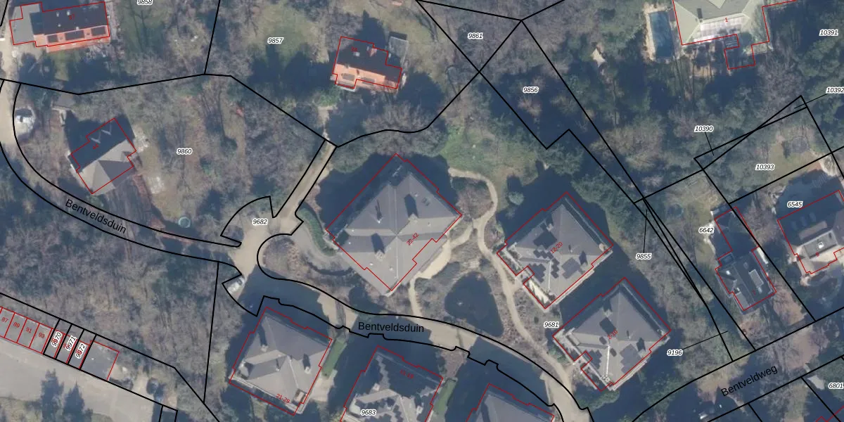Het perceel waarop Bentveldsduin 42 staat heeft een oppervlakte van 4747 m². Dit is een zeer groot perceel. De perceeloppervlakte wordt geregistreerd door het Kadaster. Gedetailleerde informatie over de maten van dit perceel kunt u vinden in het rapport Kadastrale kaart met maatvoering van Bentveldsduin 42.