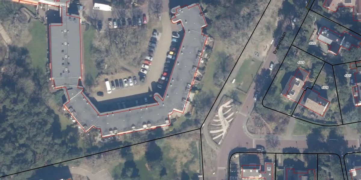 Het perceel waarop Bramenlaan 128 staat heeft een oppervlakte van 2,9 ha. Dit is een zeer groot perceel. De perceeloppervlakte wordt geregistreerd door het Kadaster. Gedetailleerde informatie over de maten van dit perceel kunt u vinden in het rapport Kadastrale kaart met maatvoering van Bramenlaan 128.