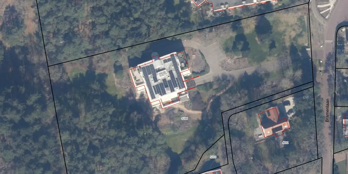 Het perceel waarop Bramenlaan 6-d staat heeft een oppervlakte van 1,0 ha. Dit is een zeer groot perceel. De perceeloppervlakte wordt geregistreerd door het Kadaster. Gedetailleerde informatie over de maten van dit perceel kunt u vinden in het rapport Kadastrale kaart met maatvoering van Bramenlaan 6-d.