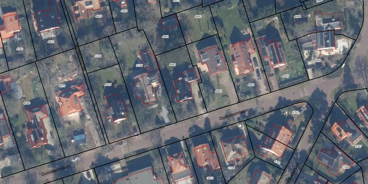 Het perceel waarop Duindoornlaan 18 staat heeft een oppervlakte van 696 m². Dit is een groot perceel. De perceeloppervlakte wordt geregistreerd door het Kadaster. Gedetailleerde informatie over de maten van dit perceel kunt u vinden in het rapport Kadastrale kaart met maatvoering van Duindoornlaan 18.